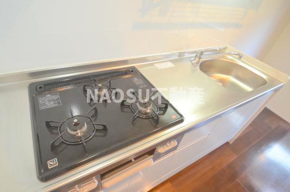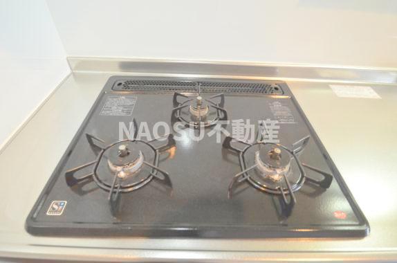 ガスコンロ2口設置されています。火力も安心。