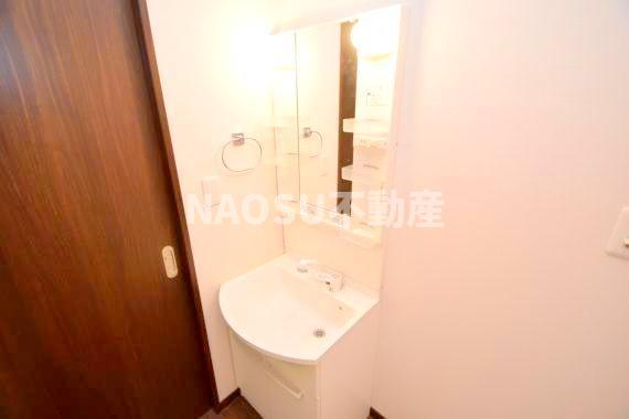 ゆったりとスペースのある洗面所